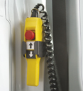 Sécurité électrique de fin de course et sécurité mécanique au moyen d’un câble d’acier.